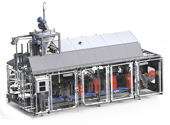Nossas soluções de embalagem são desenvolvidas para ambientes agrícolas de alto volume. Desde a pesagem e o enchimento da nVenia’s waté a automação de ensacamento da Votech’s e o embalamento com filme Stretch da Wulftec’s nossos sistemas oferecem desempenho confiável para embalagens de grãos e commodities a granel.