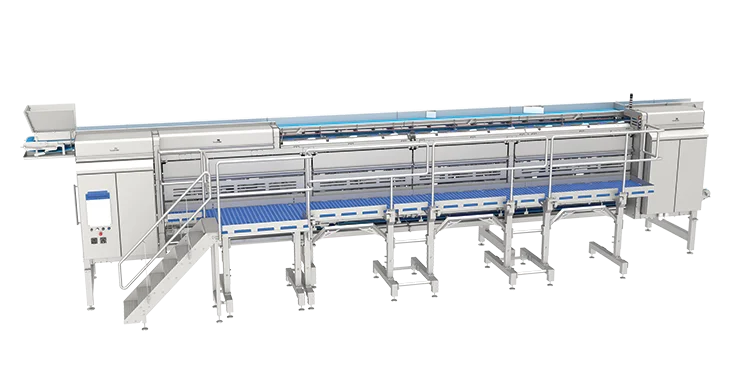O sistema avançado da Foodmate oferece automação precisa e eficiente para cortar frangos inteiros em diversos tipos de partes, formas e tamanhos.